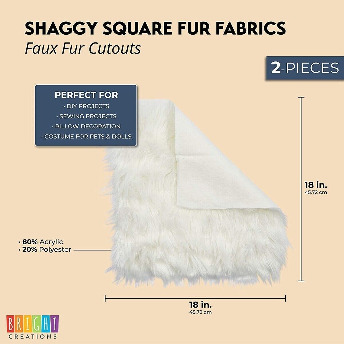 Square Faux Fur Fabric For Crafts Sewing Diy Pillows White 18x18 In 2 Pack 194425193284 Ebay
